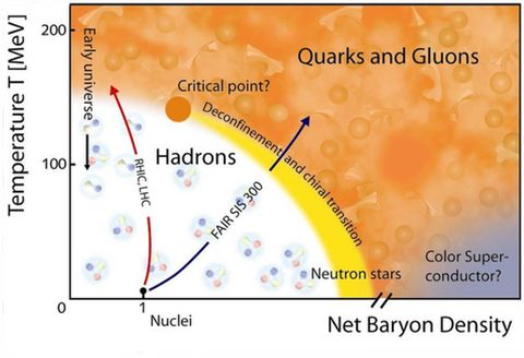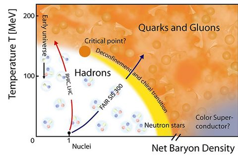 Quarks are the constituents of the massive basic building blocks of visible matter. These building blocks are the hadrons, more precisely protons and neutrons, which are about 2,000 times heavier than electrons. It was a heroic effort to determine the nature of the phase transition for physical quark masses, which our group carried out in 2006 and published in Nature. This finding has fundamental consequences for the early universe and for the possible remnants we might detect even today. Note however, the result has not only relevance for the early universe (Big Bang) but also for heavy ion collisions (Little Bang), which are carried out at the RHIC (Brookhaven, USA) and LHC (Geneva, Switzerland) accelerators.