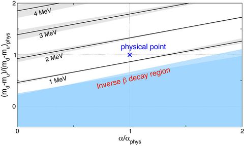 Scientists at Deutsches Elektronen-Synchrotron (DESY) in Hamburg, Germany, included for the first time both Quantum Chromodynamics (QCD) and Quantum Electrodynamics (QED) in a nonperturbative calculation. This allowed the physicists to predict isospin breaking effects in the meson, baryon and quark sectors from first principles, and in particular the n - p mass difference.
